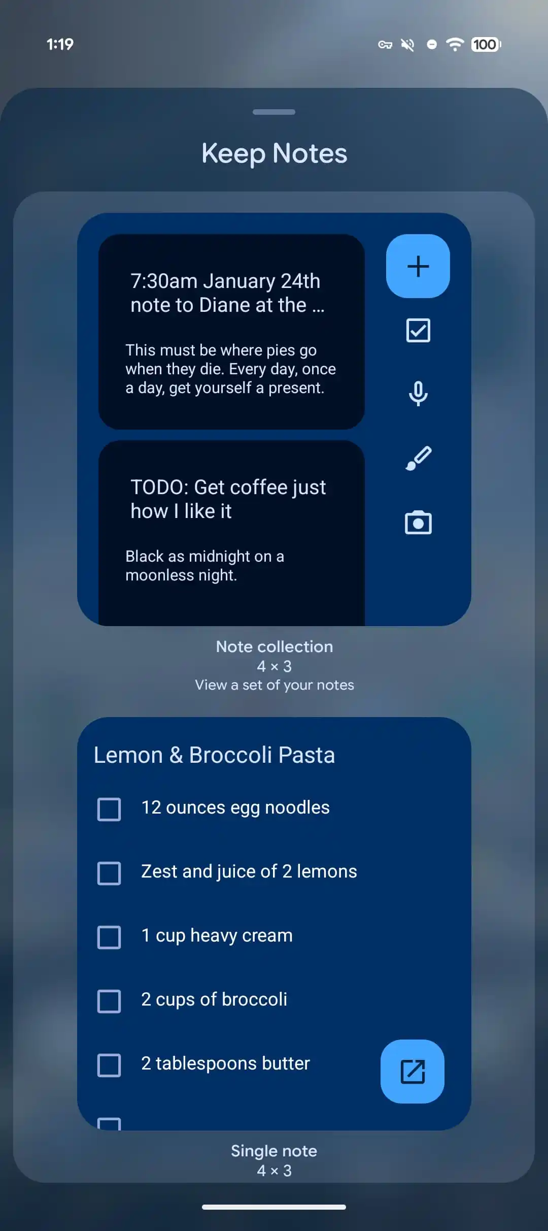 Menu Widget được làm mờ trong suốt
